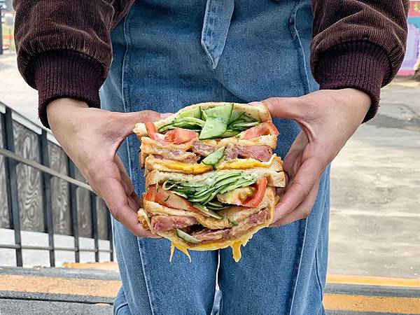 有沒有看到店家旁邊推疊起來的巨大三明治!!推疊起來真的超猛